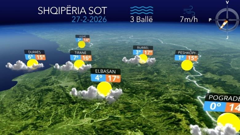 Vendi ynë do të ndikohet nga kushte atmosferike të qëndrueshme. Moti parashikohet i kthjellët në të gjithë territorin ndërsa vranësirat të pakta deri mesatare por kalimtare. Temperaturat maksimale do të shënojnë vlerën 19 gradë celcius. Era do të fryjë e lehtë me drejtim juglindje-veriperëndim …