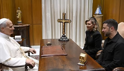 VATIKAN – Papa Leo XIV ka pritur në një takim privat presidentin ukrainas Volodymyr Zelensky dhe Zonjën e Parë Olena Zelenska, vetëm pak orë pas meshës së tij të parë si Papë në Sheshin e Shën Pjetrit.