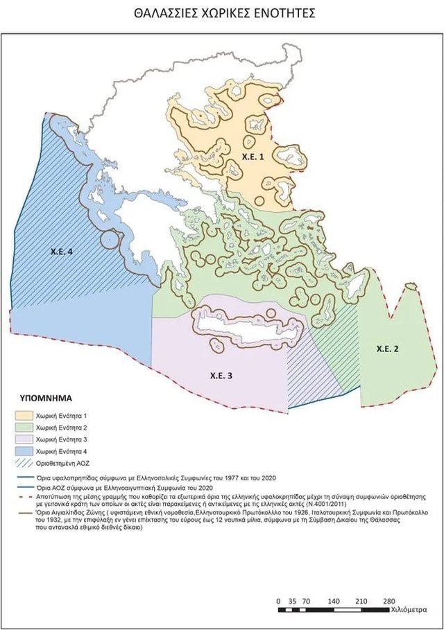 Në njoftimin për shtyp të shpërndarë nga Ministria e Jashtme Greke theksohet se ky plan paraqet një kornizë gjithëpërfshirëse për zhvillimin e një ekonomie blu dhe qarkulluese, duke respektuar mjedisin dhe duke rregulluar përdorimet e zonave detare në përputhje me direktivën evropiane 2014/89/BE dhe të drejtën ndërkombëtare.
