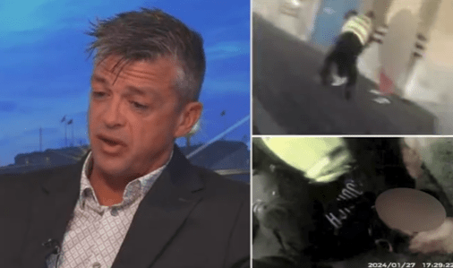 Në pamjet e publikuara, Castle shihet duke përplasur të dyshuarin në mur, më pas në tokë, duke i vendosur dorën mbi fytyrë ndërsa e shoqëronte me sharje dhe kërcënime. Gjatë ndalimit, nga brezi i të miturit ra një thikë tip “Stanley”. Adoleshenti dyshohej për sulm ndaj dy personave, përfshirë një të moshuar.