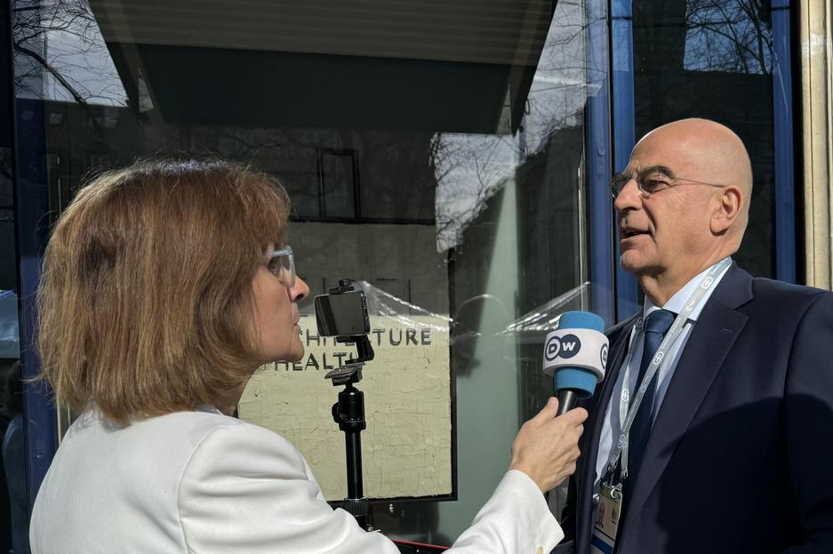 Zgjerim i buxhetit të mbrojtjes: Ministri grek i Mbrojtjes Nikos Dendias në Mynih MSC 2024, flet ne mikrofon.