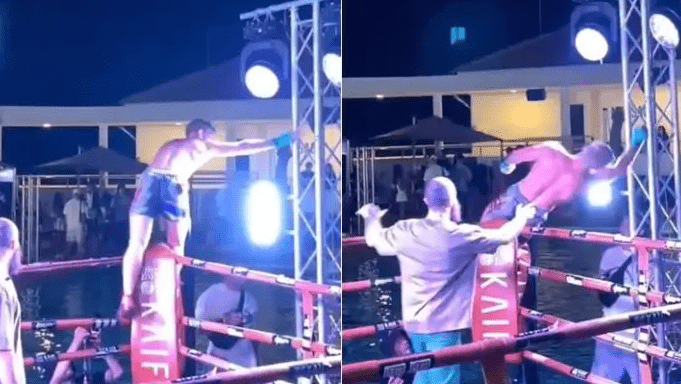 Gjatë një eventi boksi në Tajlandë, një luftëtar rus i MMA-së përjetoi një moment dramatik gjatë festimit të fitores së tij.