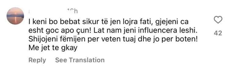 Askush nuk mohon që të qenit influencues është sot një profesion më vete. Por, një pjesë e ndjekësve në Shqipëri po ngrenë shqetësimin se përdorimi i fëmijëve si pjesë e këtij “produkti online” po tejkalon çdo kufi. Komente si “i kanë kthyer bebat në biznes”, “nuk janë më fëmijë, janë quiz-e online”, apo “shijojeni për vete, jo për botën” janë shenja të një lodhjeje kolektive ndaj spektaklit të pandërprerë në rrjet.