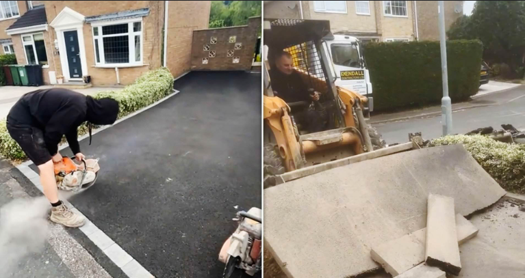 Në videon që mori mbi një milion shikime në TikTok, punëtorë të kompanisë Kendall Contractors Ltd shfaqen duke përdorur një sharrë elektrike dhe një ekskavator për të çmontuar një rrugicë të sapopërfunduar, ndërsa në sfond dëgjohet muzikë ritmike. Përshkrimi i postimit ishte provokues: “Can’t pay? We’ll take it away” – një referencë ndaj një emisioni britanik ku pronarët e borxheve humbasin pasuritë e tyre.