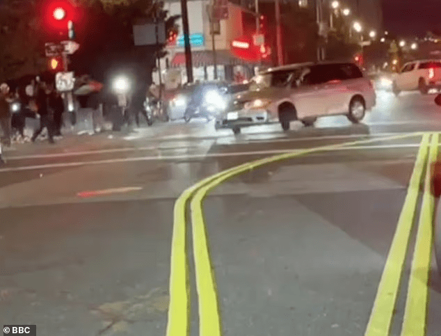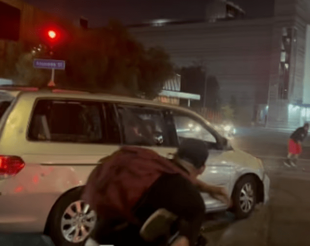 Pamje të frikshme tregojnë njerëz që vrapojnë për jetën teksa një furgon përplaset në turmë; drejtuesi – i zhveshur sipas dëshmitarëve – përpiqet t’i godasë disa herë protestuesit para se të arrestohej.