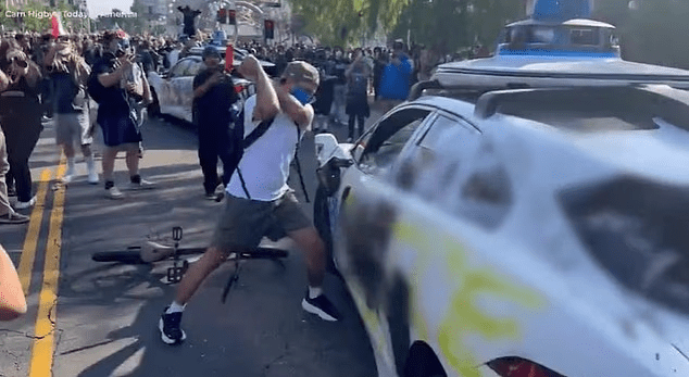 Pamje të frikshme tregonin të paktën 5 makina Waymo që digjeshin dhe vandalizoheshin, me protestues që vallëzonin mbi to dhe brohorisnin: “Digju, digju!”. Autoritetet paralajmëruan për rrezikun e gazrave toksikë nga bateritë litium-jon.