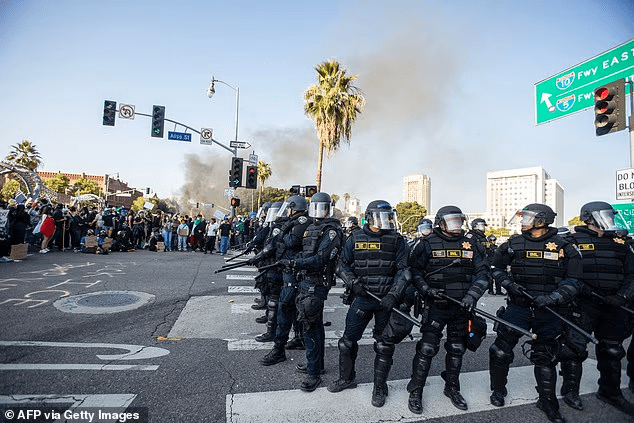 LAPD lejoi përdorimin e “municioneve jo-vdekjeprurëse” në përpjekje për të rimarrë kontrollin. Protestuesit u tërhoqën me forcë, me dhjetëra të arrestuar.