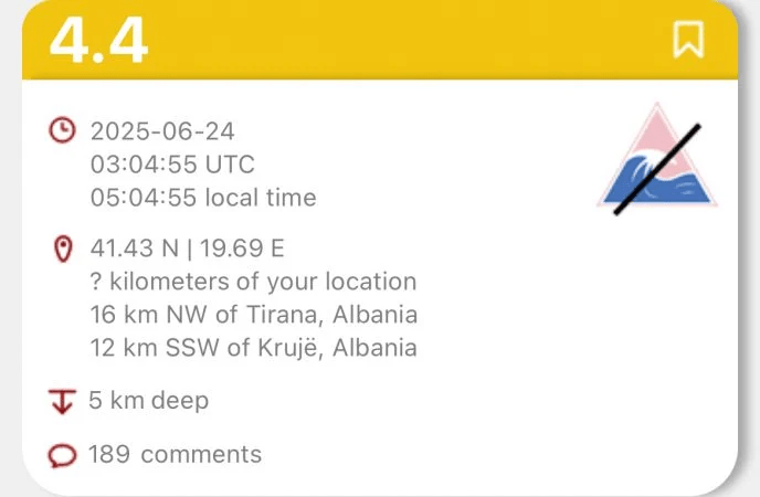 Një tërmet me magnitudë 4.4 sipas shkallës Rihter është ndjerë në orët e para të mëngjesit të sotëm në Tiranë, duke shkaktuar panik te qytetarët, edhe pse fatmirësisht nuk raportohet për dëme materiale. Sipas të dhënave paraprake, epiqendra e tërmetit ishte në zonën e Kamzës, në një thellësi prej 8 kilometrash, ndërsa lëkundja ka zgjatur vetëm disa sekonda.