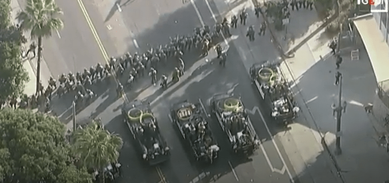 Ndërsa pjesa më e madhe e protestave u zhvilluan paqësisht, qendra e Los Anxhelosit u kthye në një vatër tensioni. Protestuesit që kundërshtojnë fushatën e Trump kundër emigrantëve u përplasën me policinë para vendosjes së ndalim-qarkullimit gjatë natës. LA u bë epiqendra e një jave protestash të përhapura në nivel kombëtar.
