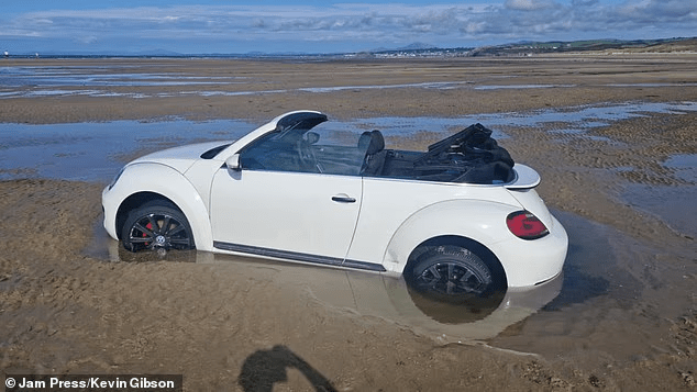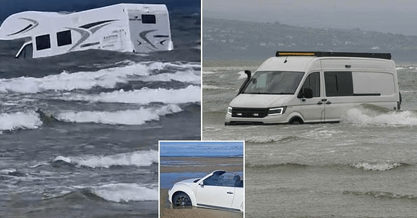 Dy furgonë kampingu dhe një VW Beetle përfunduan të përmbytur nga dallgët e fuqishme në një plazh në Uellsin e Veriut, pasi pronarët e tyre injoruan paralajmërimet për baticën e shpejtë.