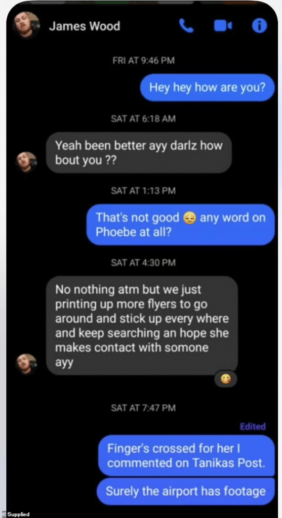 Daily Mail Australia ka siguruar mesazhe private që z. Wood i ka dërguar disa orë pasi u raportua zhdukja e Pheobe-s.