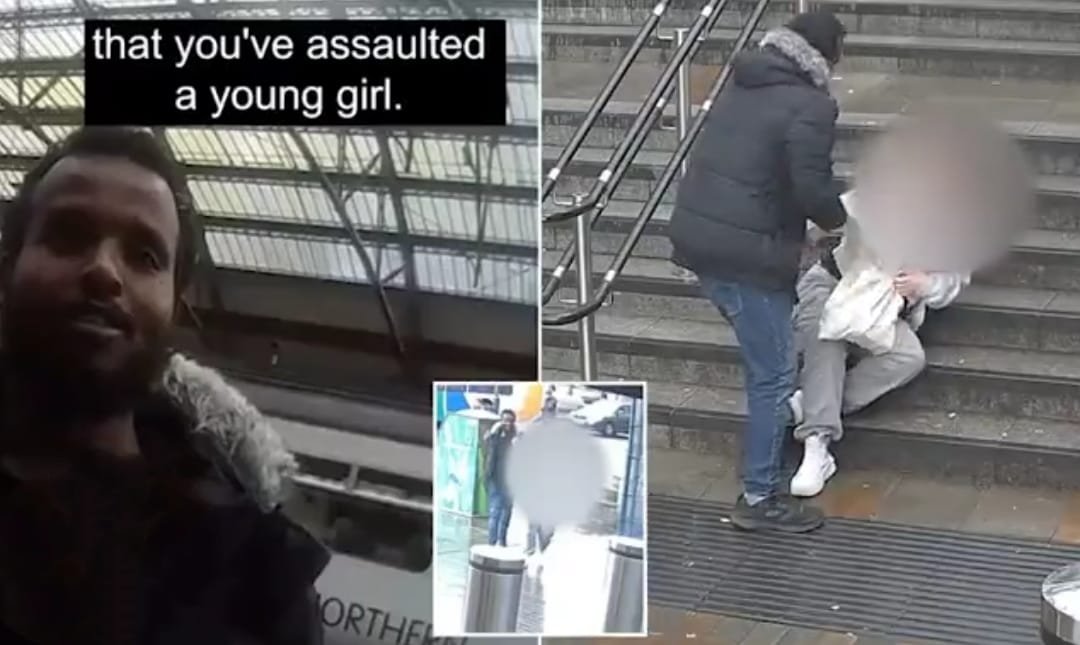 Ky është momenti rrëqethës kur një burrë përpiqet të rrëmbejë një vajzë të re në një nga stacionet më të mëdha të trenave në Mbretërinë e Bashkuar.