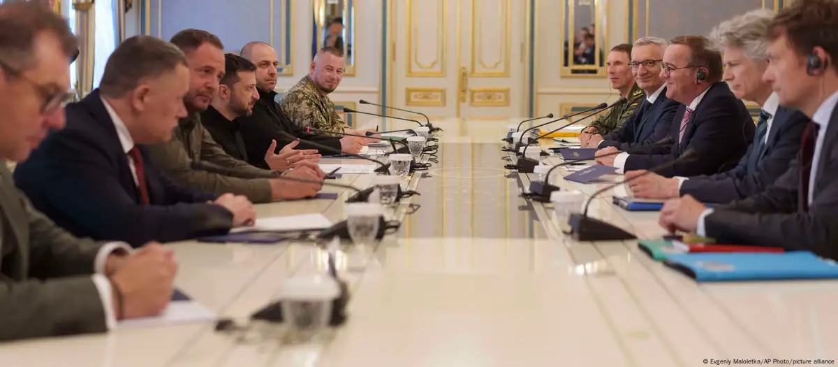 Ministri i Mbrojtjes Boris Pistorius i ka premtuar ndihma të tjera miliardëshe Ukrainës në fushën ushtarake për armatime. Me presidentin ukrainas Volodymyr Zelenskyj ai ra dakord për prodhimin e përbashkët të armatimeve. Pistorius tha gjatë vizitës në Kiev, se synohet që Ukraina të mbështetet shpejt me sisteme. Krahas shtatë miliardë eurove të miratuara muajt e fundit do të vihen në dispozicion edhe 1,9 miliardë euro. Me këto para mund të paguhen pjesërisht sistemet e armatimit me rreze të madhe veprimi, të cilat do të prodhohen në Ukrainë.