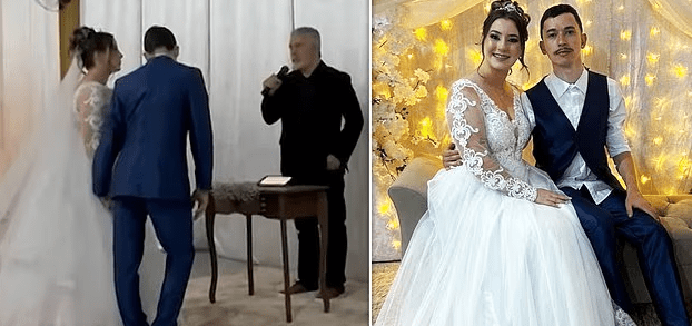 Pamjet tregojnë Gustavo Schmitz, 23 vjeç, duke qëndruar pranë të fejuarës së tij Pamela Berto Schmitz, 25 vjeç, ndërsa po shkëmbenin betimet në Santa Catarina, Brazil, të shtunën.
