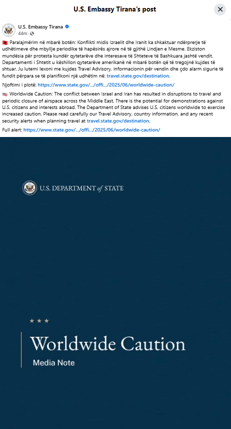 Ambasada amerikane paralajmëron për protesta të mundshme kundër Shteteve të Bashkuara të Amerikës prandaj këshillon qytetarët në mbarë botën që të tregojnë kujdes të shtuar