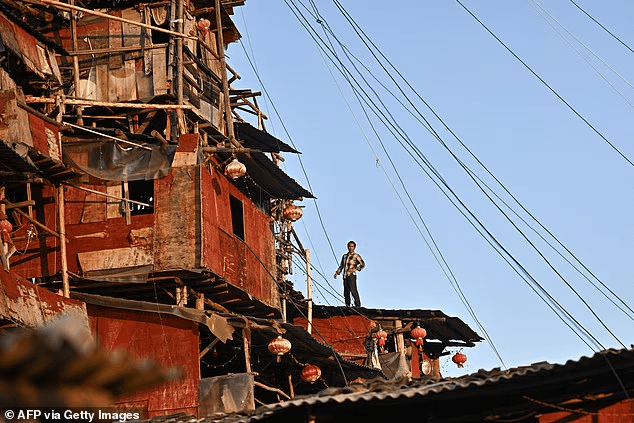 Shtëpia, e ndërtuar me dërrasa të vjetra, litarë dhe kabllo që e mbajnë të lidhur fort pas tokës, është bërë një simbol i “shtëpive gozhdë” në Kinë – një term që përshkruan banorët që nuk pranojnë të shpërngulen, pavarësisht kompensimeve dhe presioneve nga shteti apo kompanitë.