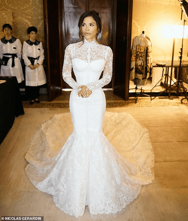 Në njërën nga fotot, ish-gazetarja shfaqet brenda një salle luksoze duke pozuar me fustanin e saj dramatik. Një tjetër imazh bardhezi tregon Lauren teksa ndihmohet nga ekipi i saj për të veshur fustanin, ndërsa në një tjetër shihet stilisti Domenico Dolce duke vendosur vellon prej dantelle mbi kokën e saj. Ajo e përshkroi foton me fjalët: “Jo thjesht një fustan, por një poezi. Faleminderit @dolcegabbana për magjinë që krijuat.”