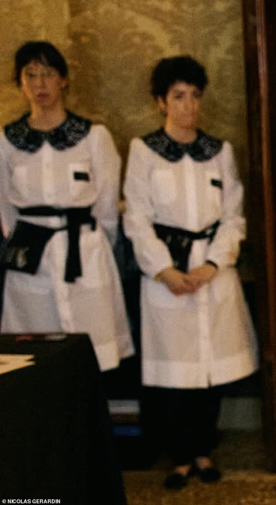 Në një nga fotot, shfaqen dy rrobaqepës të ateliesë së Dolce & Gabbana-s, të veshur me uniforma që u ngjanin atyre të shërbyeseve – përfshirë përparëse të bardha me detaje të zeza në jakë dhe rripa.