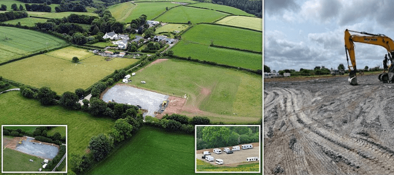 Një komunitet i qetë rural në fshatin Charles, në veri të Devonit, është tronditur nga një zhvillim i befasishëm: një grup udhëtarësh të dyshuar si “grabitës toke” kanë shndërruar një fushë të gjelbër në një kamp të shtruar me zhavorr – të gjitha brenda 24 orësh dhe pa leje ndërtimi.