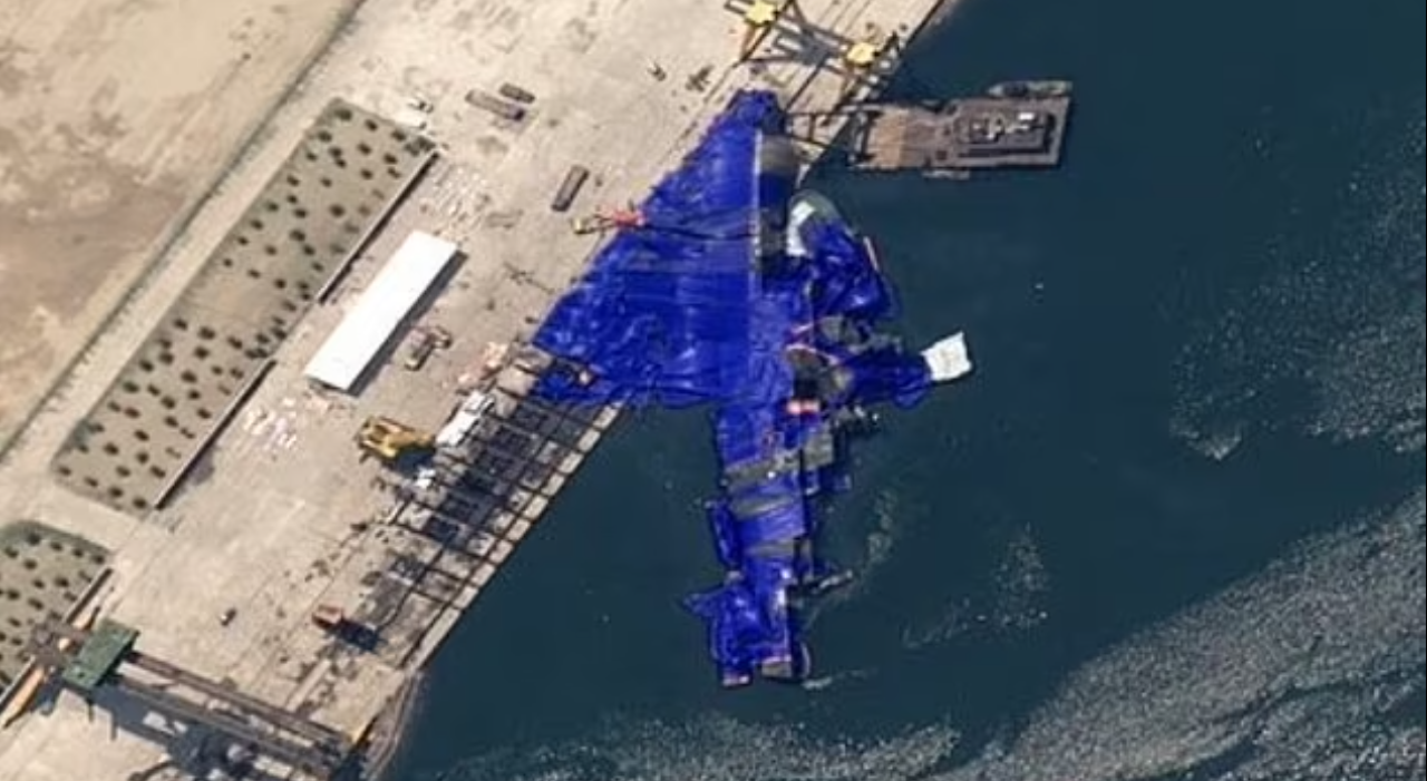 Anija shkatërruese me peshë 5,000 tonë, e projektuar për të mbajtur armë të sofistikuara përfshirë raketa bërthamore balistike dhe lundruese, u përmbys dhe u dëmtua rëndë për shkak të një defekti teknik gjatë vendosjes në ujë. Pamjet e kapura nga kompania Planet Labs PBC tregojnë se mjeti lundrues ndodhet ende i pjesshëm i fundosur në anë të portit, i mbuluar me mushama të mëdha blu – në një përpjekje të dukshme për të fshehur dështimin.