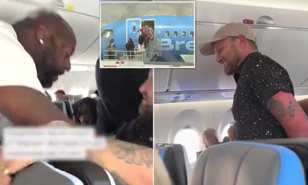 David Leroy Carter, 46 vjeç, akuzohet se ka bërtitur sharje raciste dhe ka goditur me një skateboard e një rrip sigurie stjuardesat dhe pasagjerët. Sipas dëshmitarëve, ai hodhi mbeturina në dysheme dhe refuzoi urdhrat për t’u ulur. Pamjet tregojnë momentin kur stjuardesa kërkon ndihmë nga pasagjerët dhe 1.98 metra i gjatë “Ray”, ish-tight end dhe defensive end në shkollë të mesme, e ngriti Carter-in nën sqetulla dhe e uli në vend, duke fituar nofkën “linebacker-i në 17C”.
