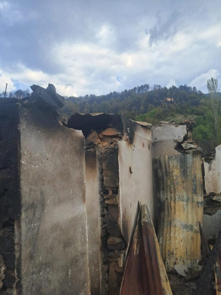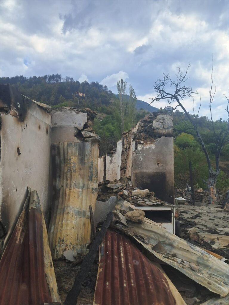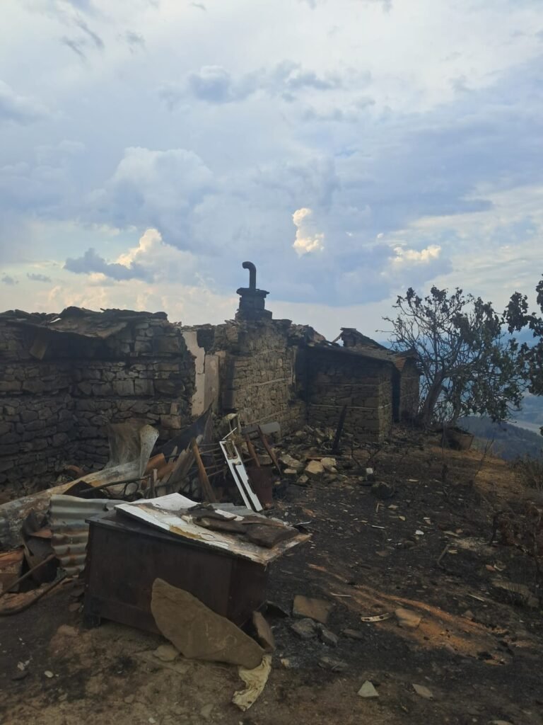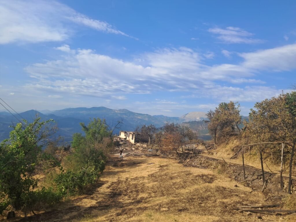 Familja që banonte në këtë shtëpi mbeti pa asgjë. Çdo send i tyre, kujtim apo orendi, u kthye në hi brenda pak minutash. Zjarri, që nisi me vrull të madh, përhapej me shpejtësi nëpër kodra dhe pyje, pa lënë kohë për asnjë ndërhyrje apo shpëtim.