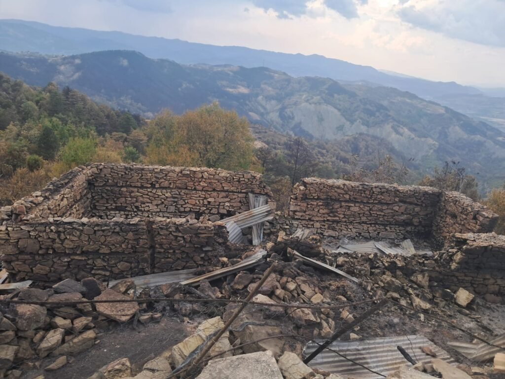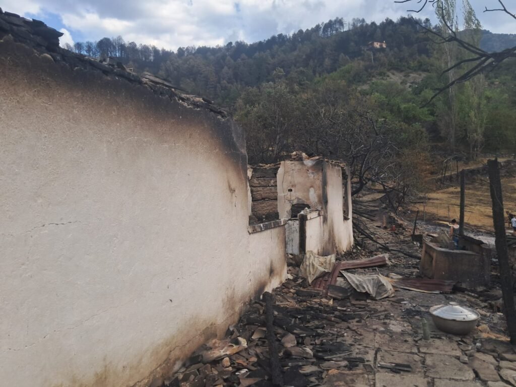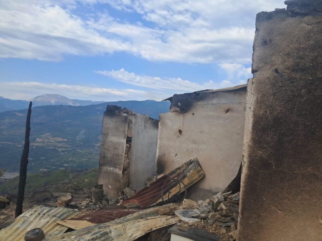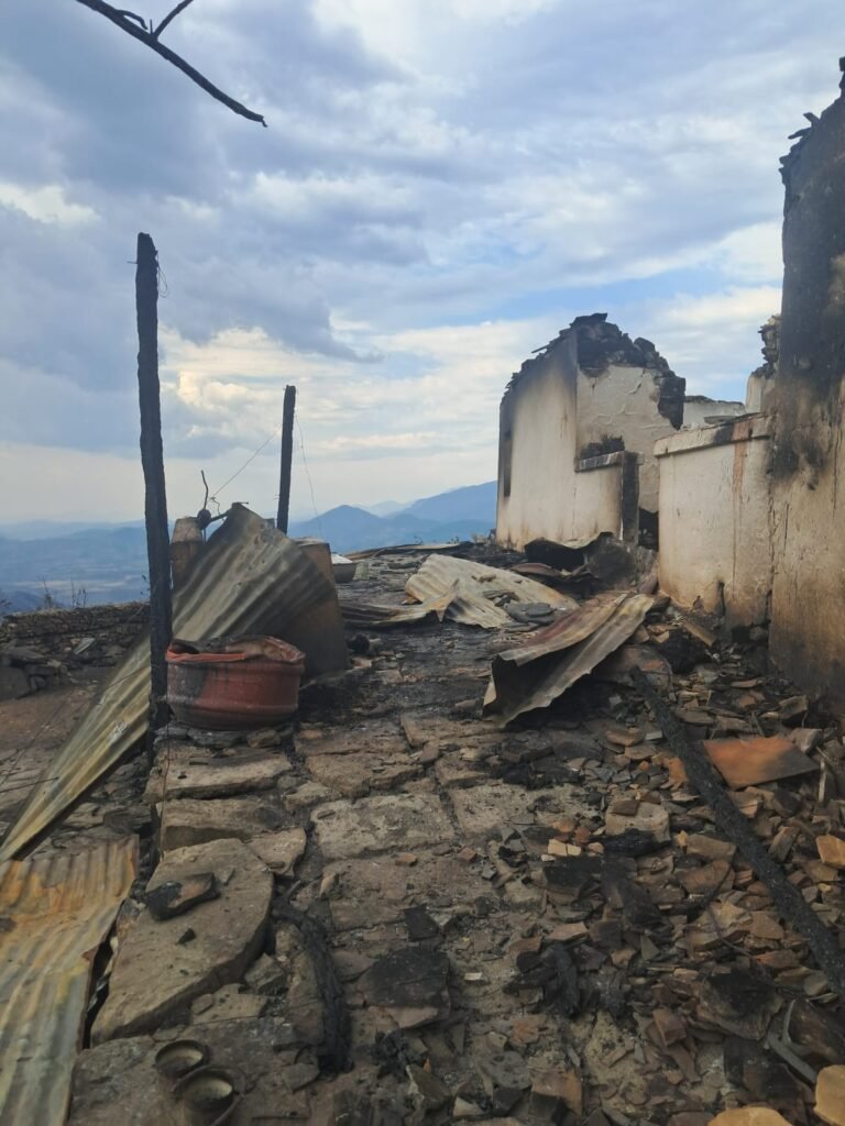 Familja që banonte në këtë shtëpi mbeti pa asgjë. Çdo send i tyre, kujtim apo orendi, u kthye në hi brenda pak minutash. Zjarri, që nisi me vrull të madh, përhapej me shpejtësi nëpër kodra dhe pyje, pa lënë kohë për asnjë ndërhyrje apo shpëtim.