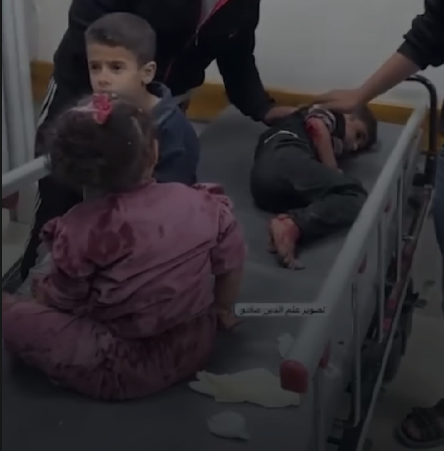 Pamjet e publikuara në rrjet tregojnë fëmijë të mbuluar në gjak, të shtrirë pranë njëri-tjetrit, ndërsa stafi mjekësor përpiqet të ndihmojë me mjetet e pakta që kanë në dispozicion.