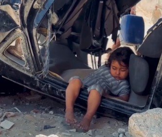 Pamja prekëse është kthyer në simbol të dëshpërimit dhe pafuqisë së fëmijëve që po rriten në mes të luftës, pa shtëpi, pa siguri dhe pa një vend ku të strehohen.