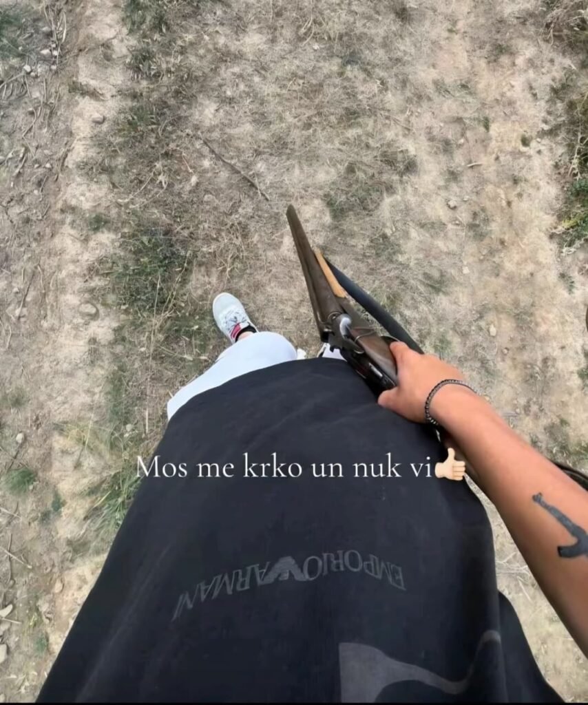 Fotot e siguruara nga mediat tregojnë 14-vjeçarin e dyshuar duke pozuar me një armë gjahu tip çifte dhe duke vendosur mbishkrimin “Unë do shfaqem kur nuk ta pret mendja”. Ai përshkruhet nga bashkëmoshatarët si problematik dhe i përfshirë shpesh në konflikte. Policia ka sekuestruar telefonat e të dyve dhe vijon kërkimet për gjetjen e thikës së krimit.